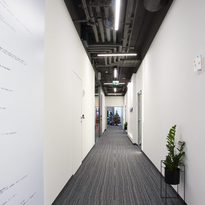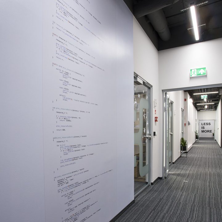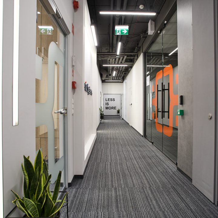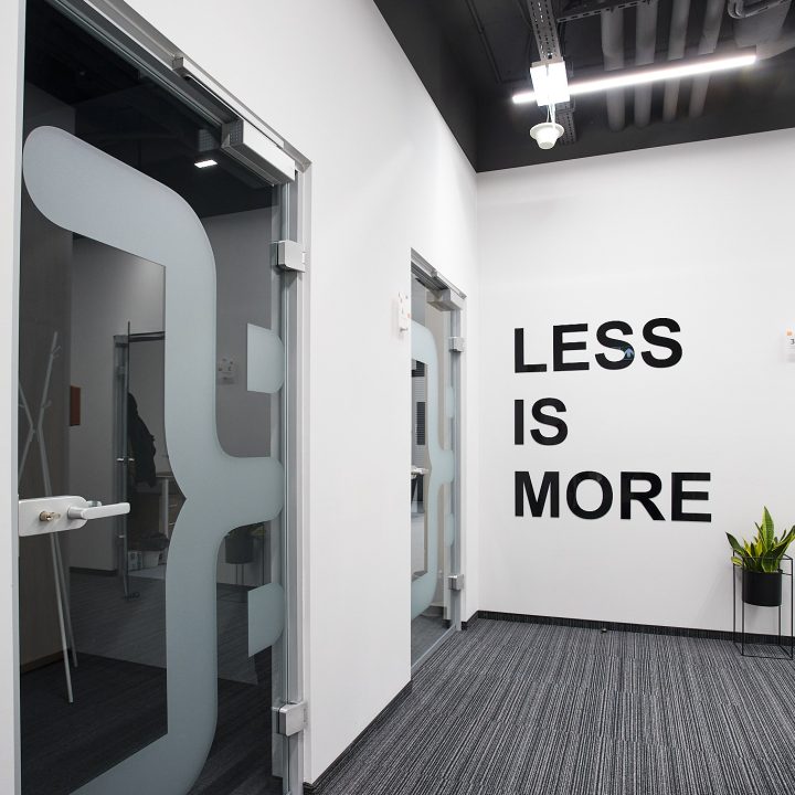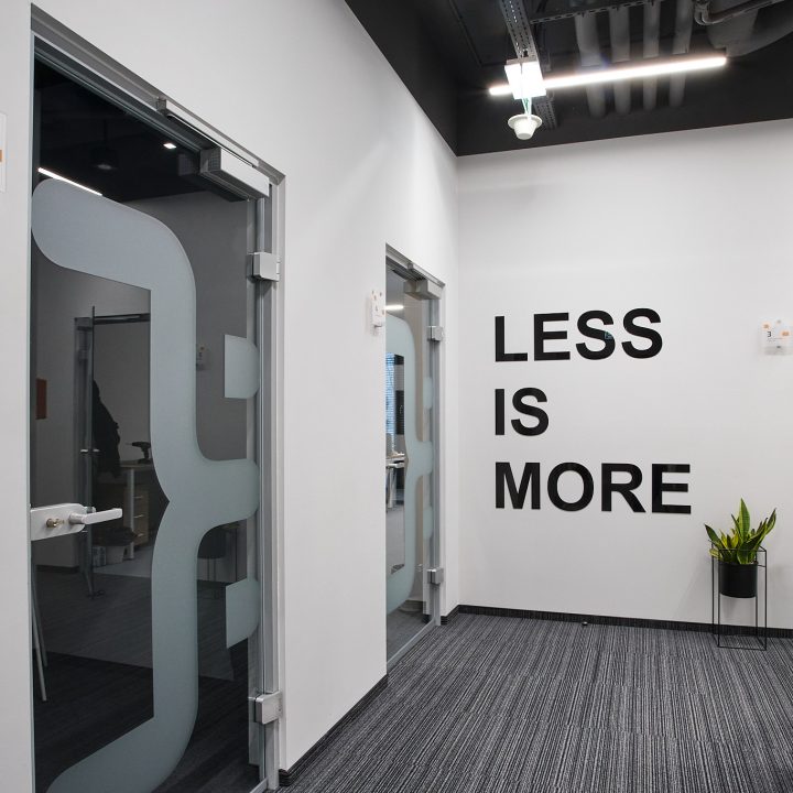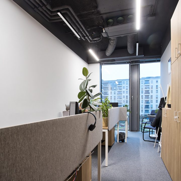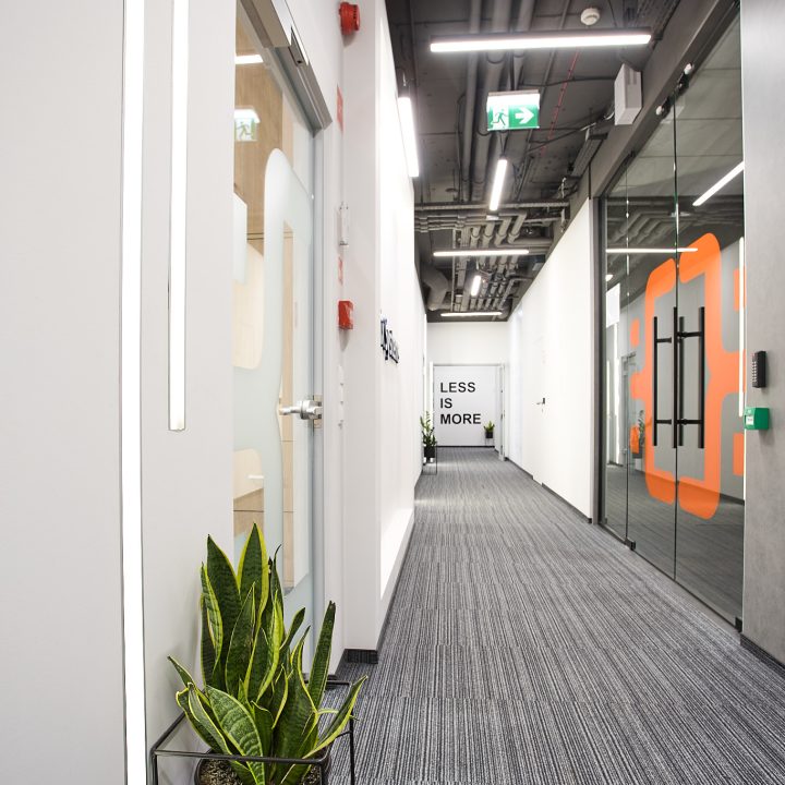 Wykorzystanie wewnętrznych zespołów Asemblo pozwoliło na pełną kontrolę nad każdym detalem wykończenia biura.