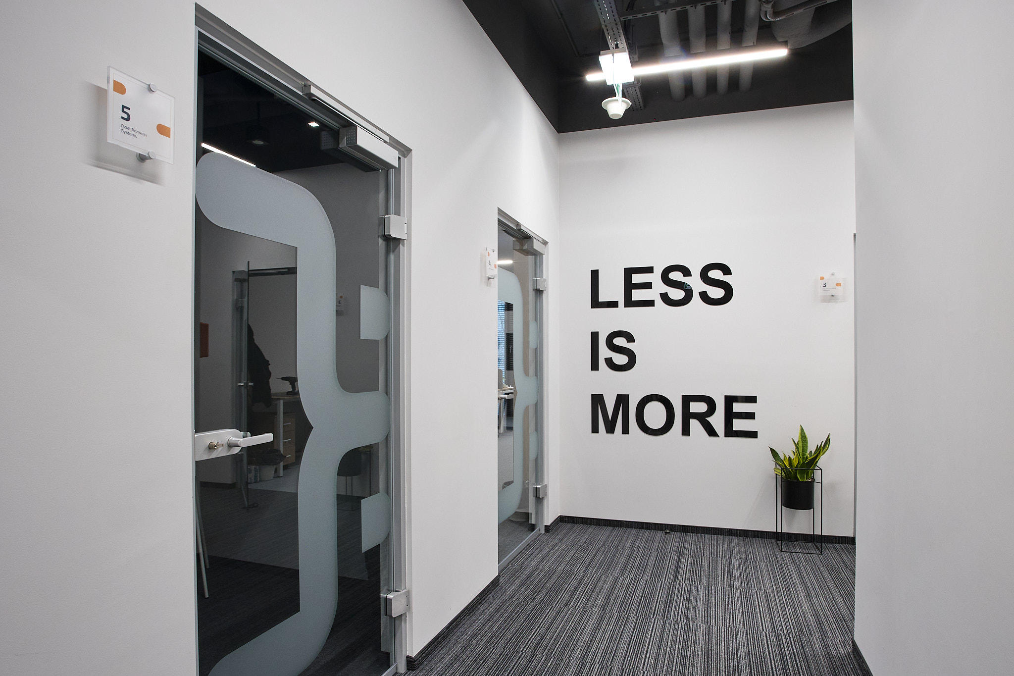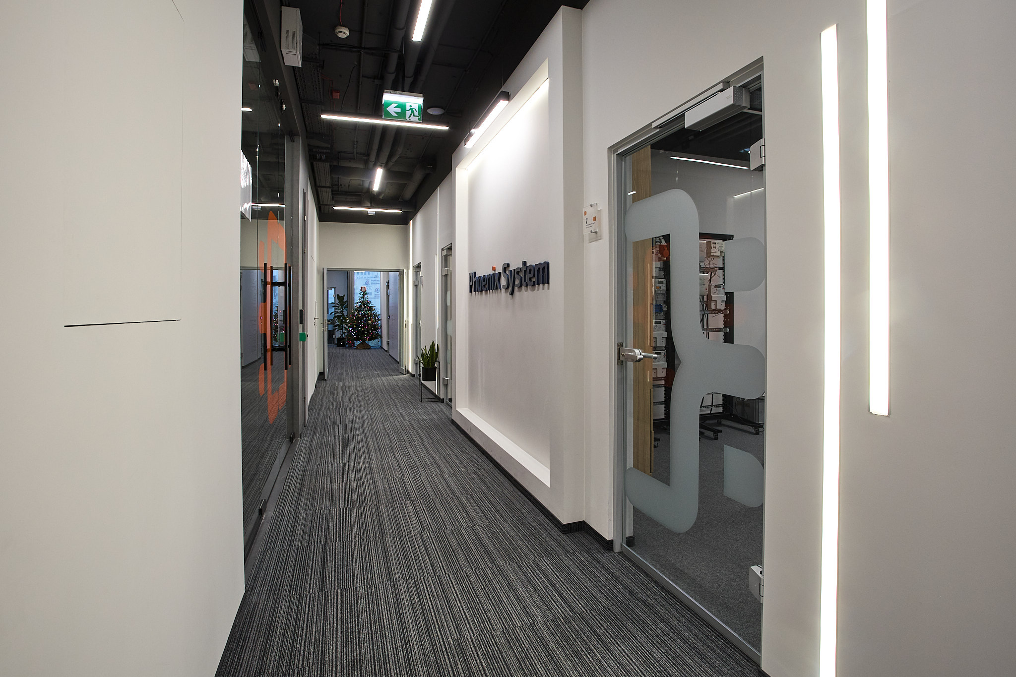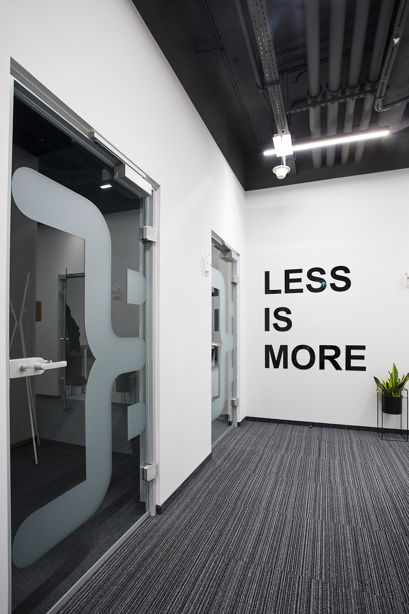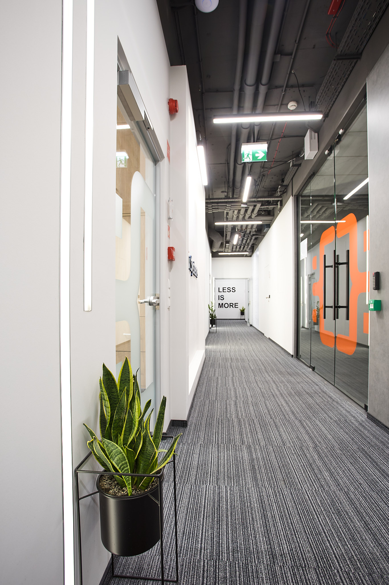 Wykorzystanie wewnętrznych zespołów Asemblo pozwoliło na pełną kontrolę nad każdym detalem wykończenia biura.