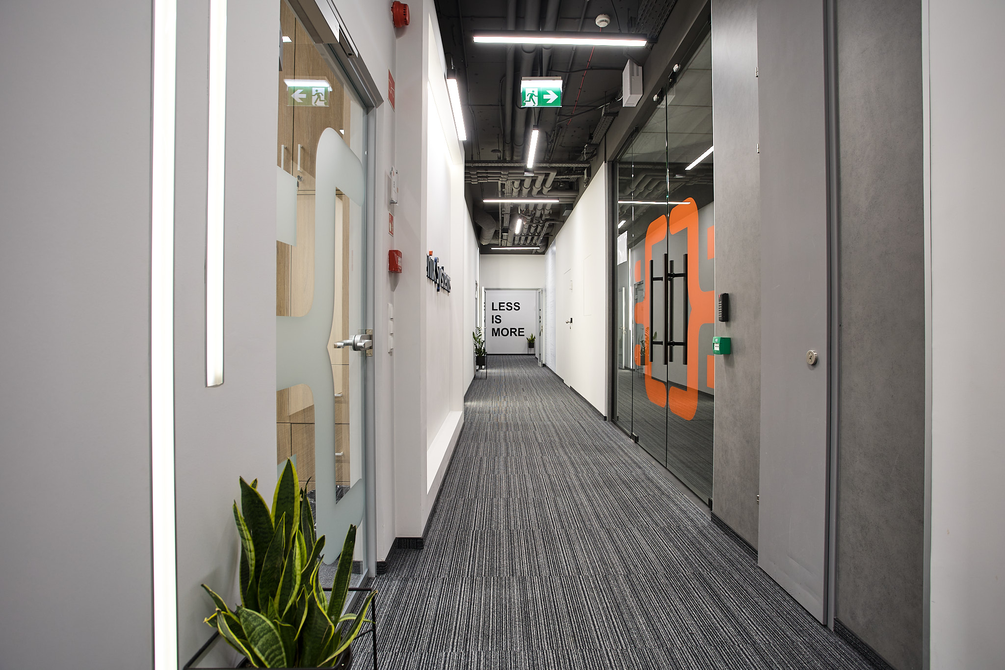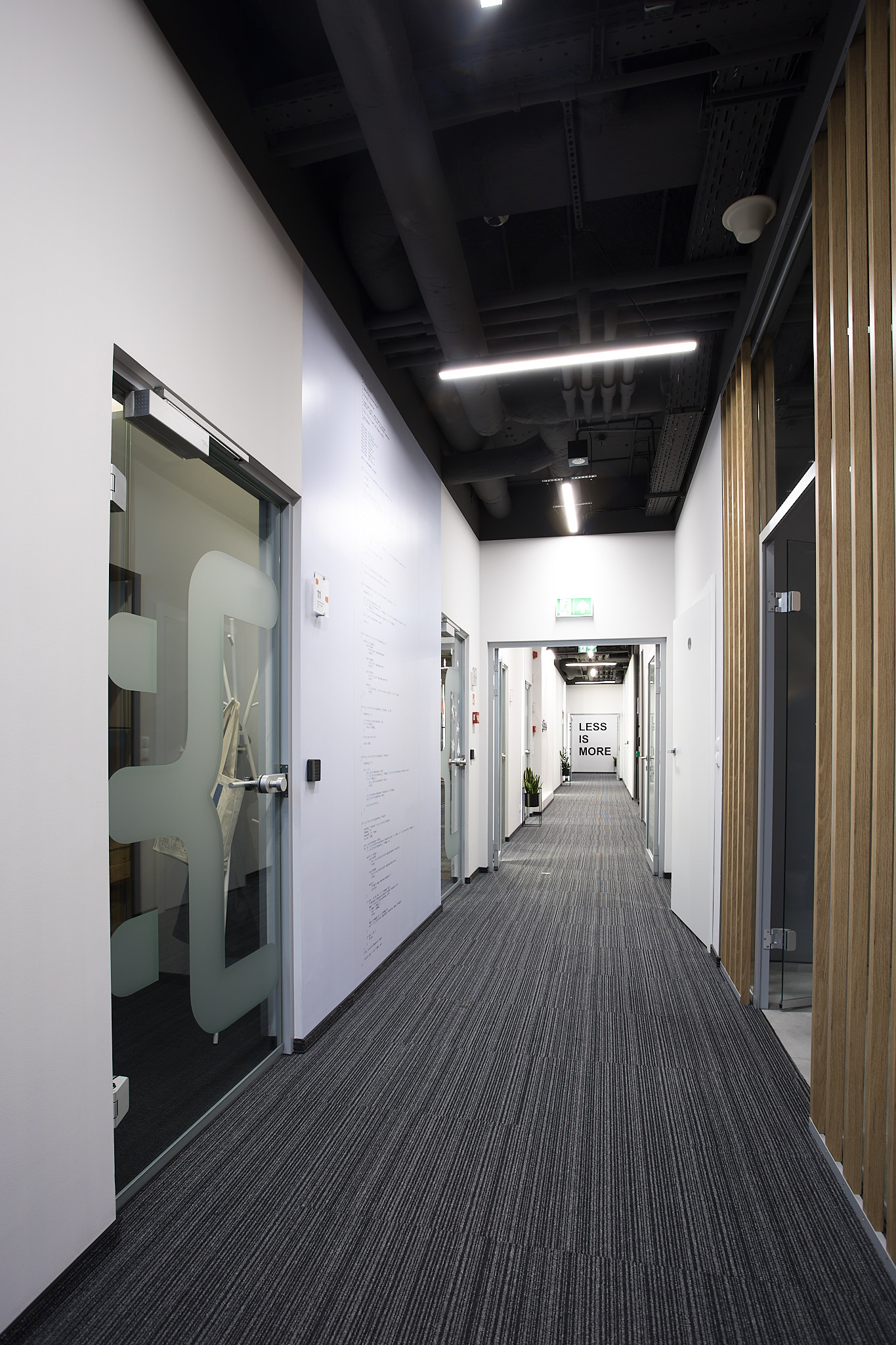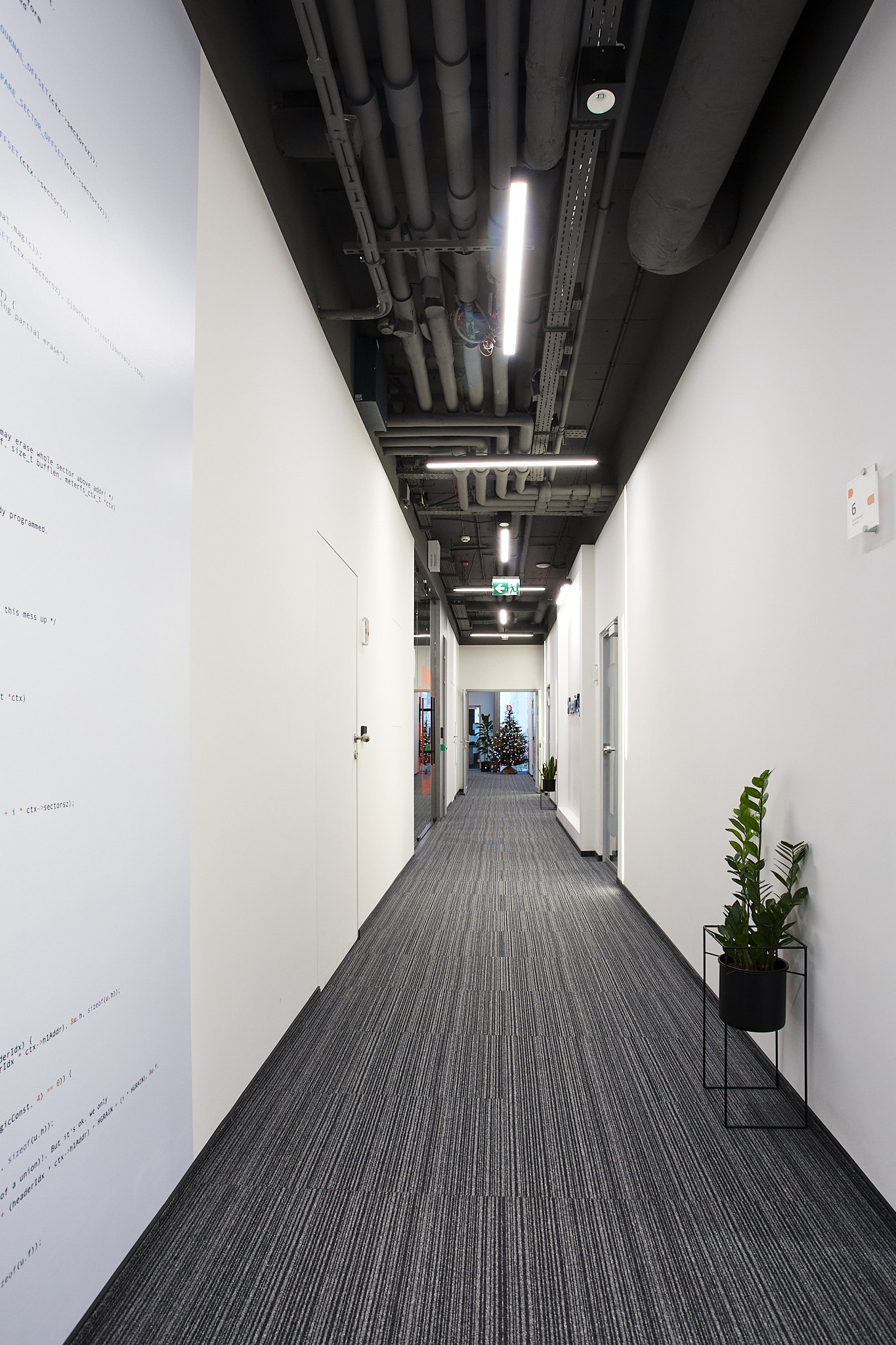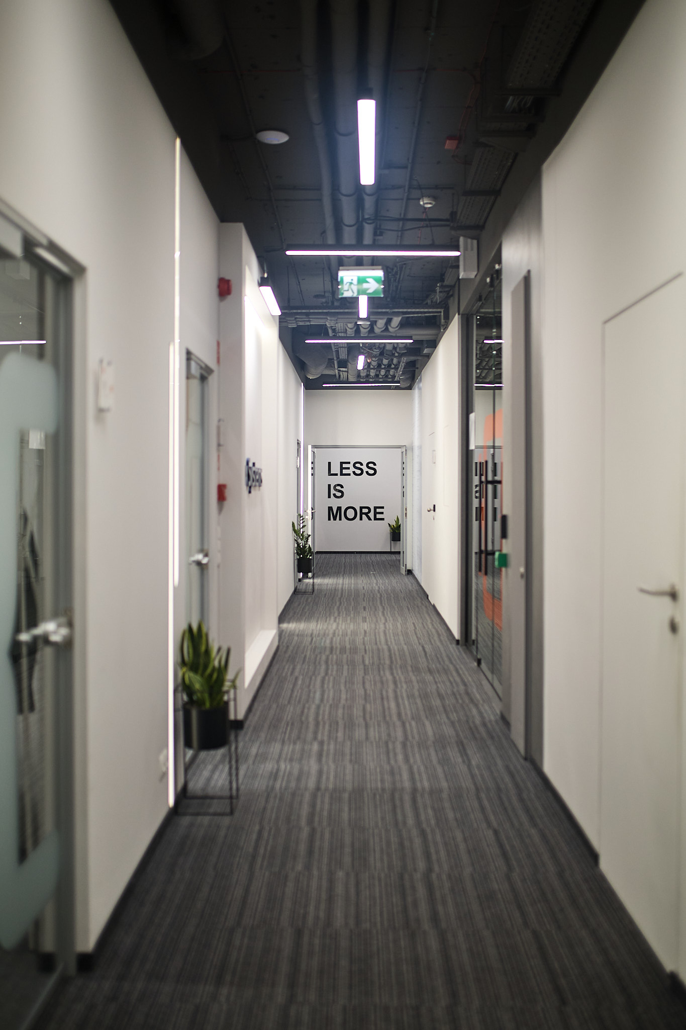 Wykorzystanie wewnętrznych zespołów Asemblo pozwoliło na pełną kontrolę nad każdym detalem wykończenia biura.